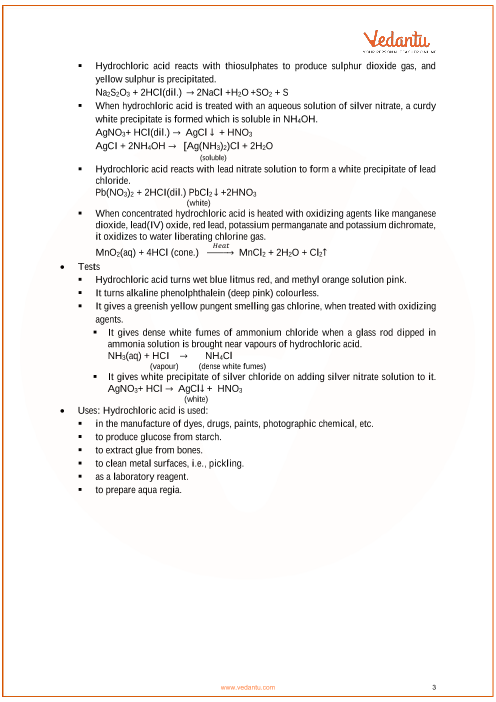 Icse Class 10 Chemistry Chapter 8 Study Of Compounds Hydrogen Chloride Revision Notes
